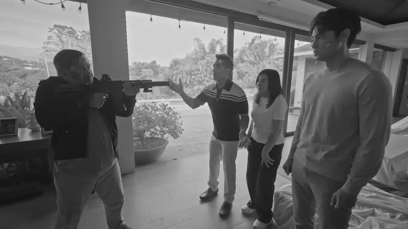 In the middle of their tiff, a mob of highly-trained, organized criminals threaten Liam’s family and the guests, and take them hostage for Php50M per hostage ($2.5M).